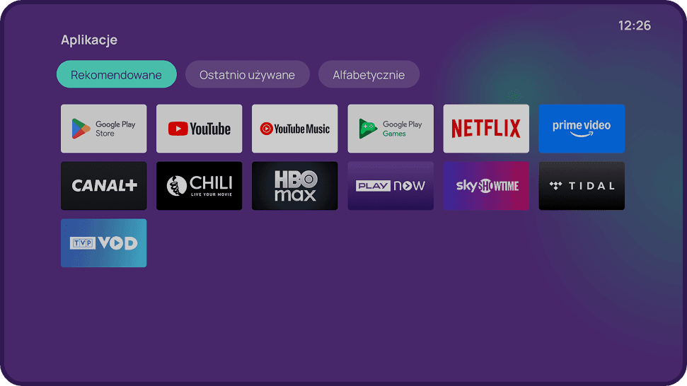 Operator Tier Launcher zastępuje standardowy ekran główny Google TV Twoim własnym, brandowanym interfejsem. Pozwala promować Twoje treści, aplikacje i usługi bezpośrednio na ekranie głównym, zachowując jednocześnie dostęp do Sklepu Google Play i usług Google.